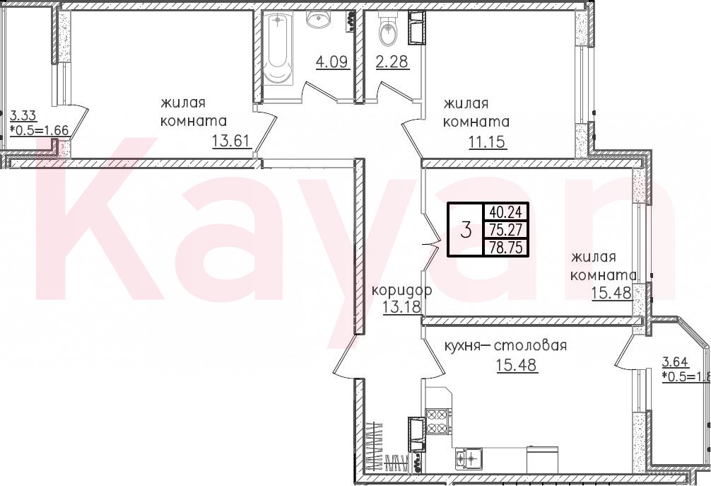 Продажа 4-комн. квартиры, 75.27 кв.м