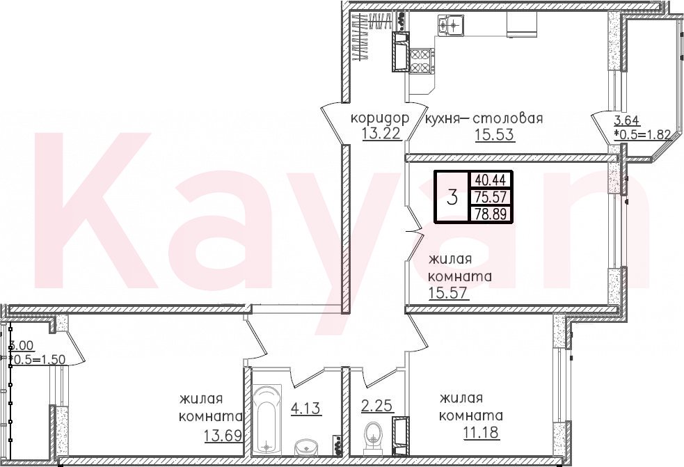 Продажа 4-комн. квартиры, 75.57 кв.м
