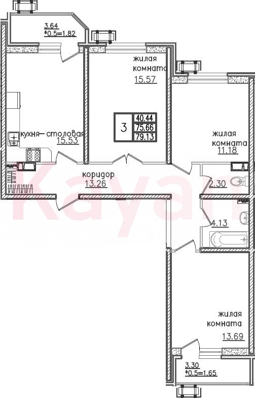 Продажа 4-комн. квартиры, 75.66 кв.м