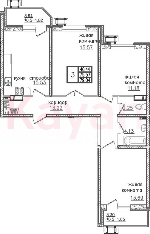 Квартира в ЖК «‎Ural» (AVA Краснодар) литер 1 очередь 1, Кирпично-монолитный, 4 к.кв., 75.57 кв.м., 16/23, высота потолков: 2.7 м, жилая площадь: 40.44 кв.м., возможна ипотека, площадь кухни 15.53 кв.м.,