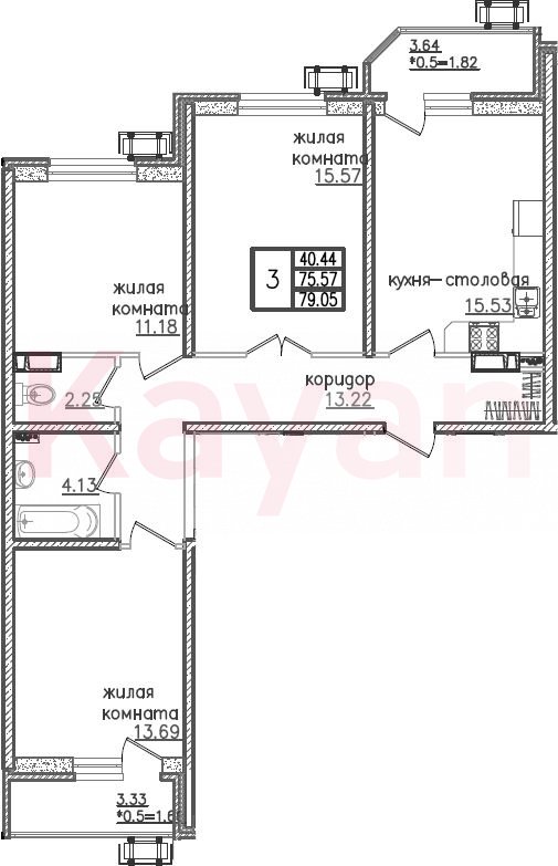 Продажа 4-комн. квартиры, 75.57 кв.м