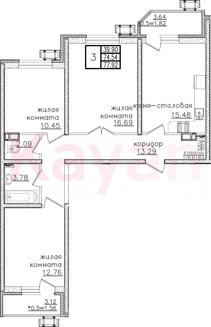 Продажа 4-комн. квартиры, 74.54 кв.м