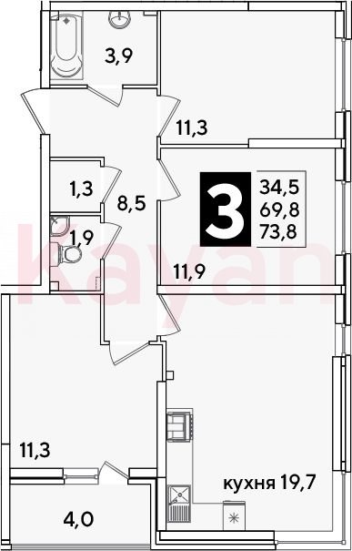 Продажа 4-комн. квартиры, 69.8 кв.м