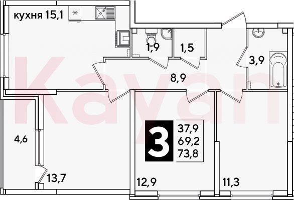 Продажа 4-комн. квартиры, 69.2 кв.м