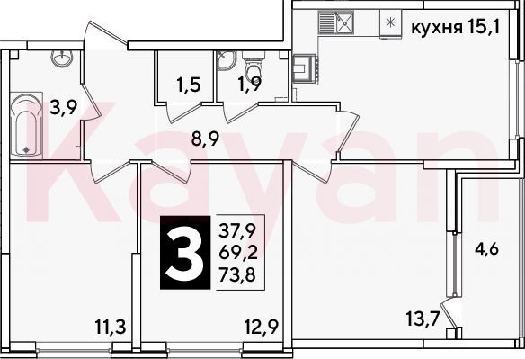 Продажа 4-комн. квартиры, 69.2 кв.м