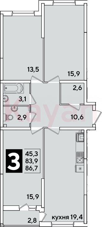 Продажа 4-комн. квартиры, 83.9 кв.м