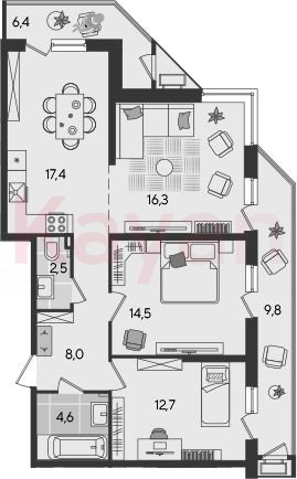 Продажа 4-комн. квартиры, 75.8 кв.м
