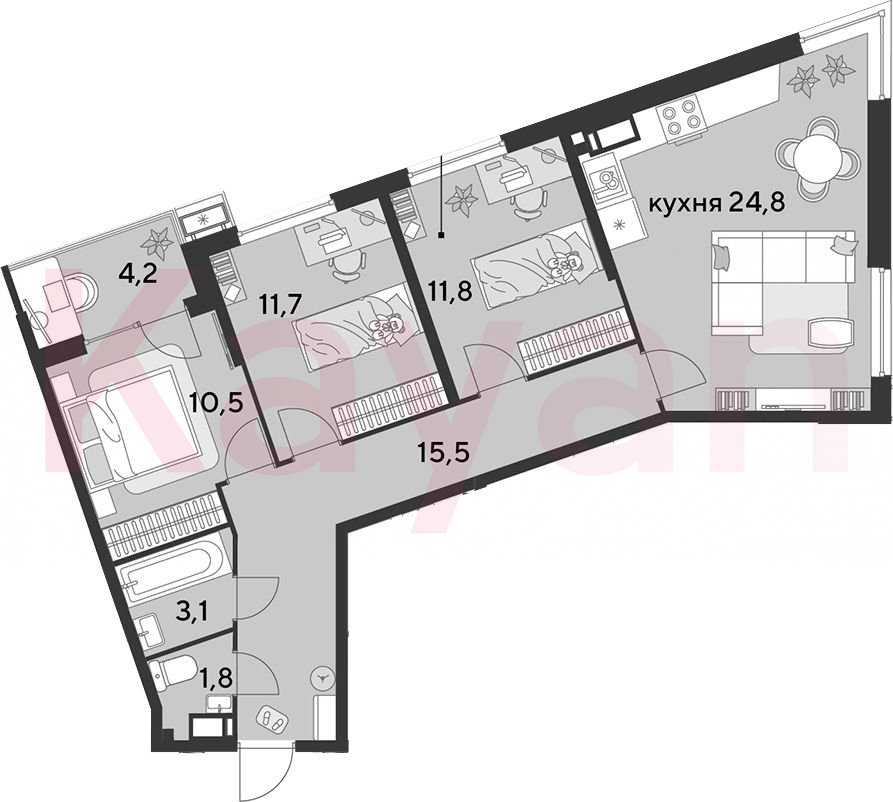 Покупателям в ЖК предложено множество планировочных решений: в наличии квартиры, как классического типа, так и европланировки. Сдаются они с мебелью, со стандартными окнами и высотой полоков 2,72 метра. В квартирах на последних этажах предусмотрено витражное остекление.