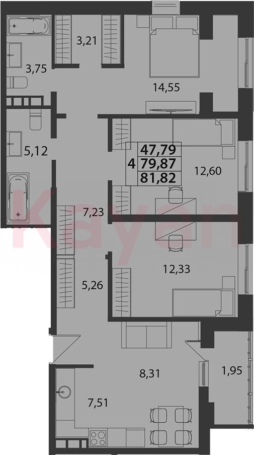 Продажа 4-комн. квартиры, 79.87 кв.м