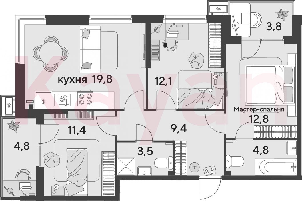 Продажа 4-комн. квартиры, 73.8 кв.м