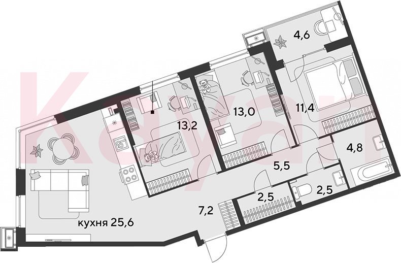 Продажа 4-комн. квартиры, 85.7 кв.м