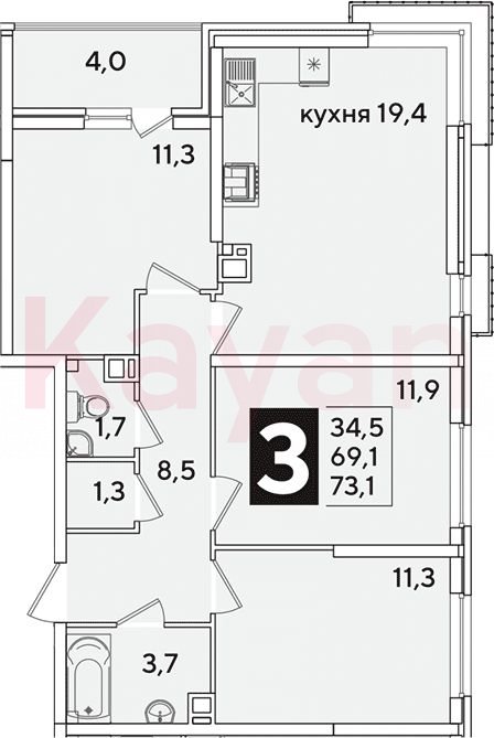 Продажа 4-комн. квартиры, 69.1 кв.м