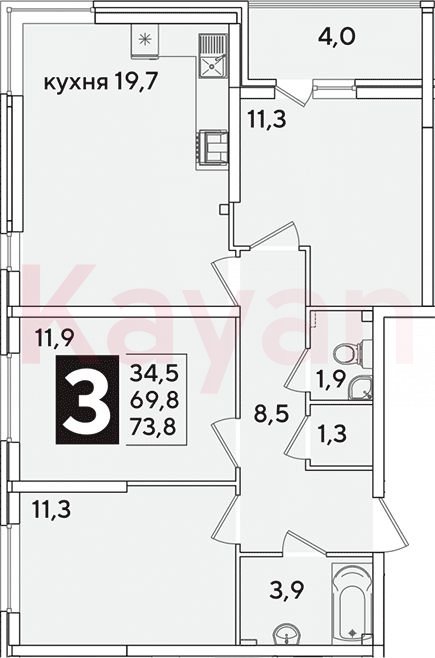 Квартира в ЖК Самолет (DOGMA. Краснодар) литер 40 очередь 6, Кирпично-монолитный, 4 к.кв., 69.8 кв.м., 2/16, высота потолков: 2.89 м, жилая площадь: 34.5 кв.м., возможна ипотека, возможна военная ипотека, площадь кухни 19.7 кв.м.,