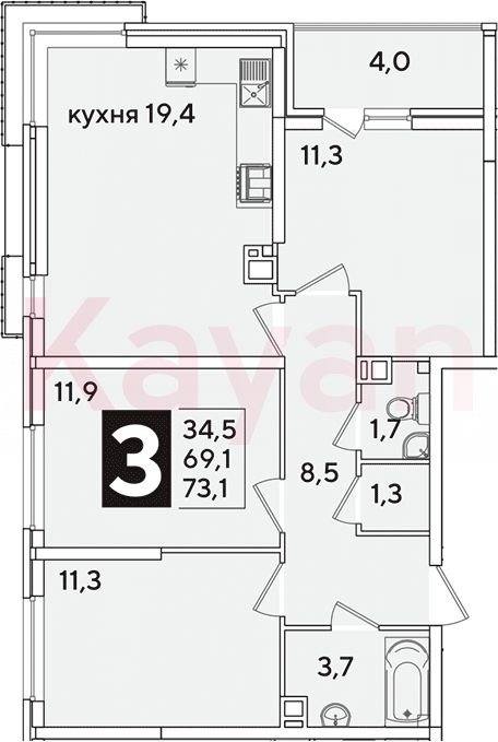 Продажа 4-комн. квартиры, 69.1 кв.м