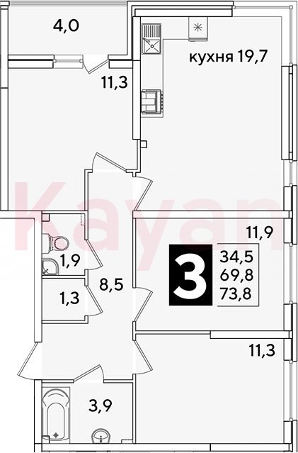 Продажа 4-комн. квартиры, 69.8 кв.м