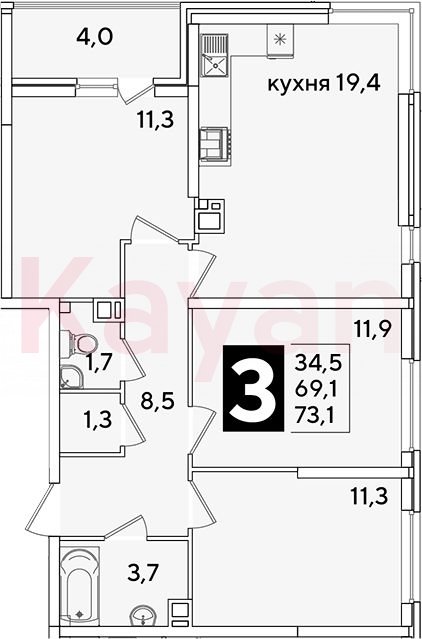 Продажа 4-комн. квартиры, 69.1 кв.м