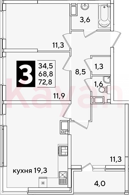 Продажа 4-комн. квартиры, 68.8 кв.м