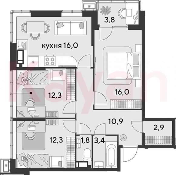 Продажа 4-комн. квартиры, 75.6 кв.м