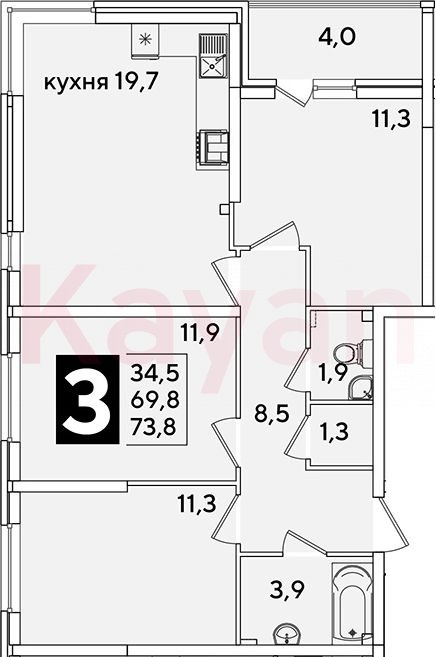 Продажа 4-комн. квартиры, 69.8 кв.м