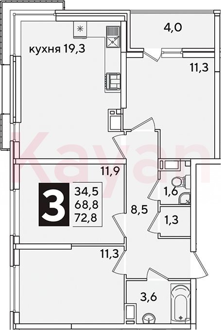Продажа 4-комн. квартиры, 68.8 кв.м