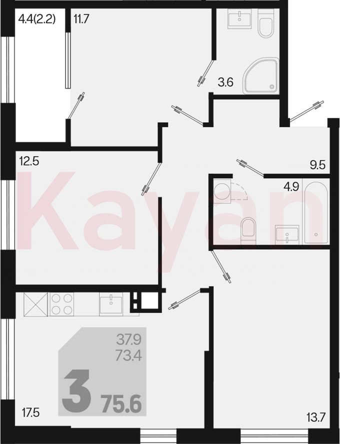 Продажа 4-комн. квартиры, 73.4 кв.м