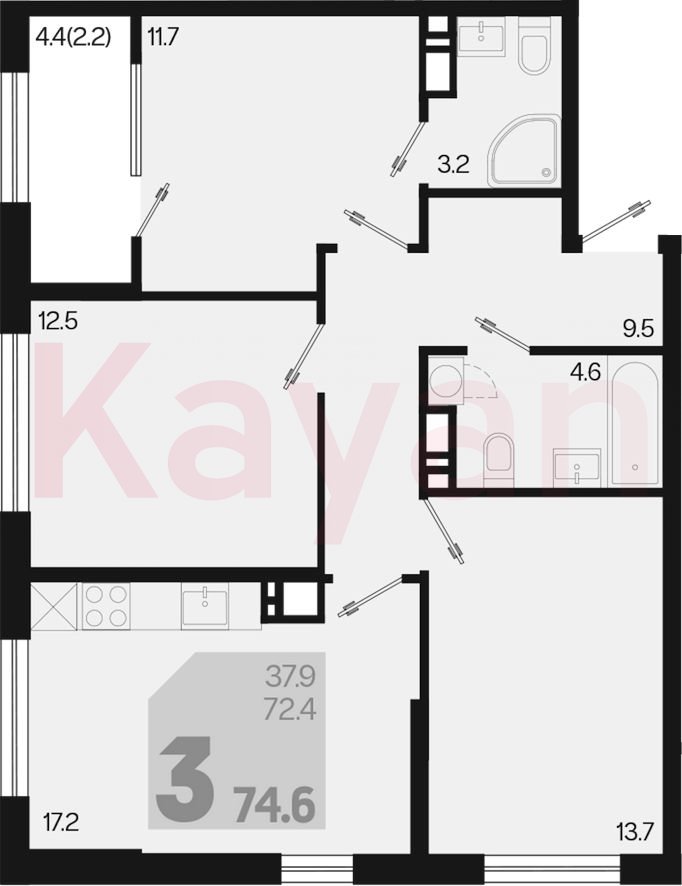 Продажа 4-комн. квартиры, 72.4 кв.м