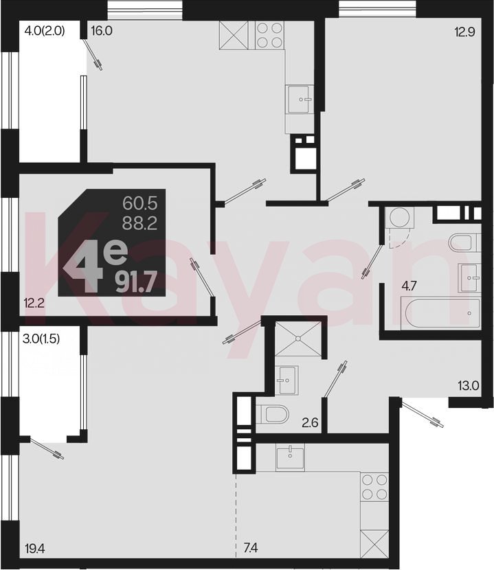 Продажа 4-комн. квартиры, 88.2 кв.м