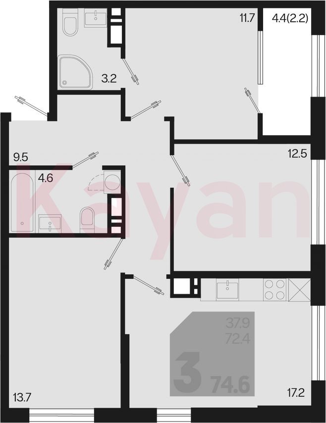 Продажа 4-комн. квартиры, 72.4 кв.м