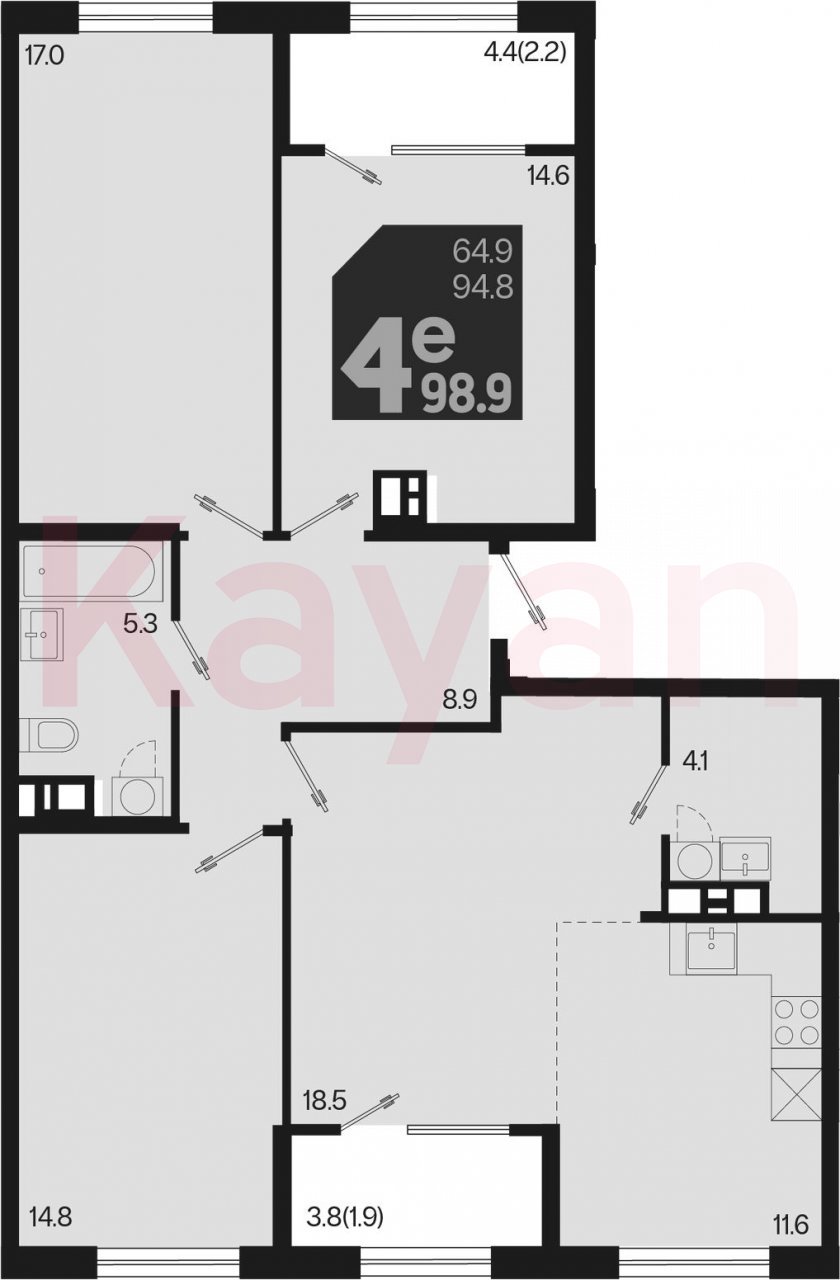 Квартира в ЖК «Первое место» (ГК Точно. Краснодарский край) литер 1.1 Л2 очередь 1, Монолитный, 4 к.кв., 94.8 кв.м., 9/9, высота потолков: 3 м, жилая площадь: 46.4 кв.м., возможна ипотека, возможна военная ипотека, площадь кухни 30.1 кв.м.,