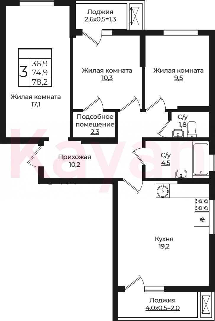 Продажа 4-комн. квартиры, 74.9 кв.м