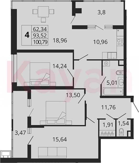 Продажа 4-комн. квартиры, 93.52 кв.м