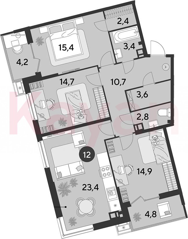 Покупателям в ЖК предложено множество планировочных решений: в наличии квартиры, как классического типа, так и европланировки. Сдаются они с мебелью, со стандартными окнами и высотой полоков 2,72 метра. В квартирах на последних этажах предусмотрено витражное остекление.
