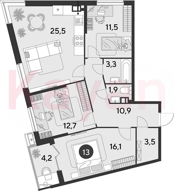Покупателям в ЖК предложено множество планировочных решений: в наличии квартиры, как классического типа, так и европланировки. Сдаются они с мебелью, со стандартными окнами и высотой полоков 2,72 метра. В квартирах на последних этажах предусмотрено витражное остекление.