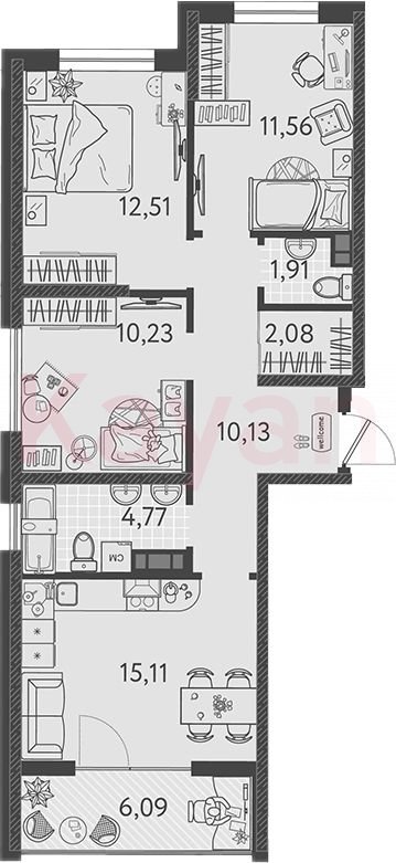 В проекте представлено множество планировочных решений: в наличии квартиры, как классического типа, так и европланировки. Сдаются они с подчистовой отделкой. Высота потолков — 2,85 метра. В лоджиях предусмотрено панорамное остекление.