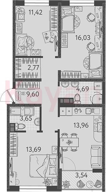 Квартира в ЖК «Друзья» (Семья) литер 7 очередь 2, Монолитный, 4 к.кв., 75.81 кв.м., 9/9, высота потолков: 2.85 м, жилая площадь: 41.14 кв.м., возможна ипотека, возможна военная ипотека, площадь кухни 13.96 кв.м.,