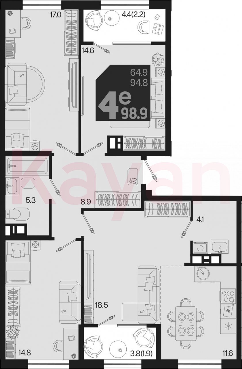 Продажа 4-комн. квартиры, 94.8 кв.м