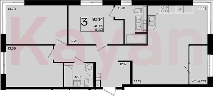 Квартира в ЖК «Патрики» (ГК Точно. Краснодарский край) литер 2 очередь 2, Кирпично-монолитный, 4 к.кв., 91.03 кв.м., 7/9, высота потолков: 2.8 м, жилая площадь: 40.65 кв.м., возможна ипотека, площадь кухни 28.64 кв.м.,