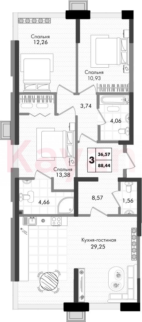 Продажа 4-комн. квартиры, 88.44 кв.м