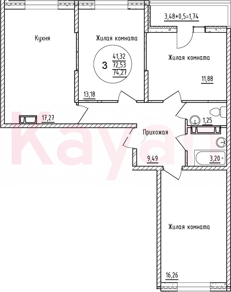 Продажа 4-комн. квартиры, 72.53 кв.м