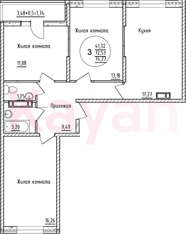 Продажа 4-комн. квартиры, 72.53 кв.м