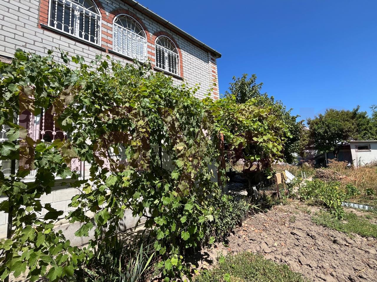 На участке плодовые деоевья,яблоня,черешня,виноград,инжир
