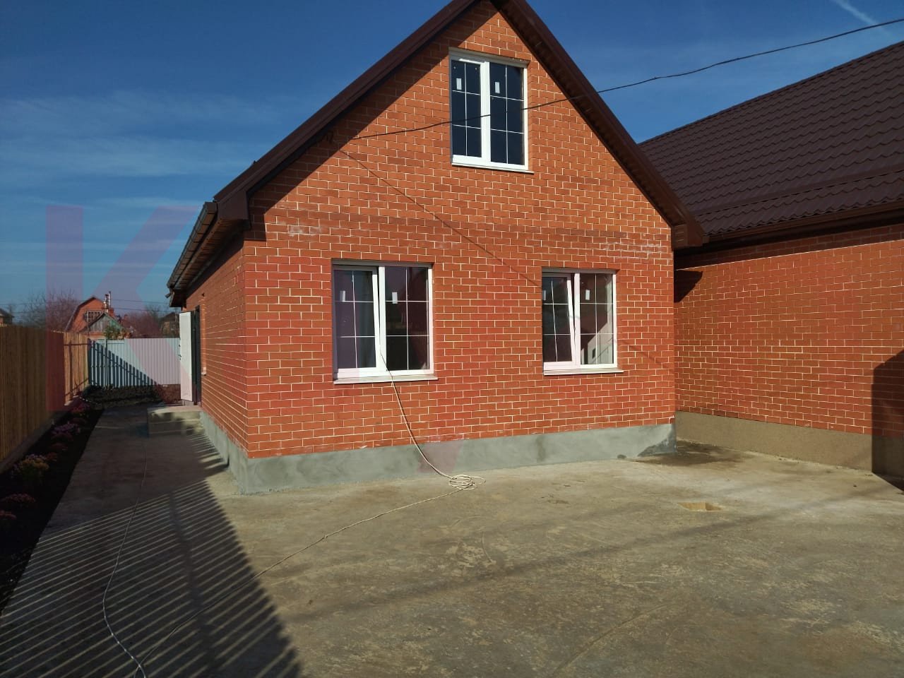 Продается новый дом Краснодар, п. Индустриальный 1.5 эт. Кирп., 60 м.кв. +35 м.кв. мансардный, 3 спальни, кухня-гостиная 23 м.кв.,с выходом на задний двор, с/у-совмещённый, предчистовая отделка, теплые полы, вода скв-35м., свет-15 квт, канализация септик на 8 кубов, участок 3 сотки.