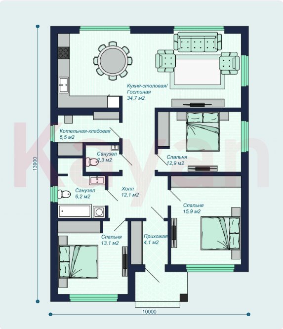 Просторные комнаты особенно кухня гостинная 35 кв.м