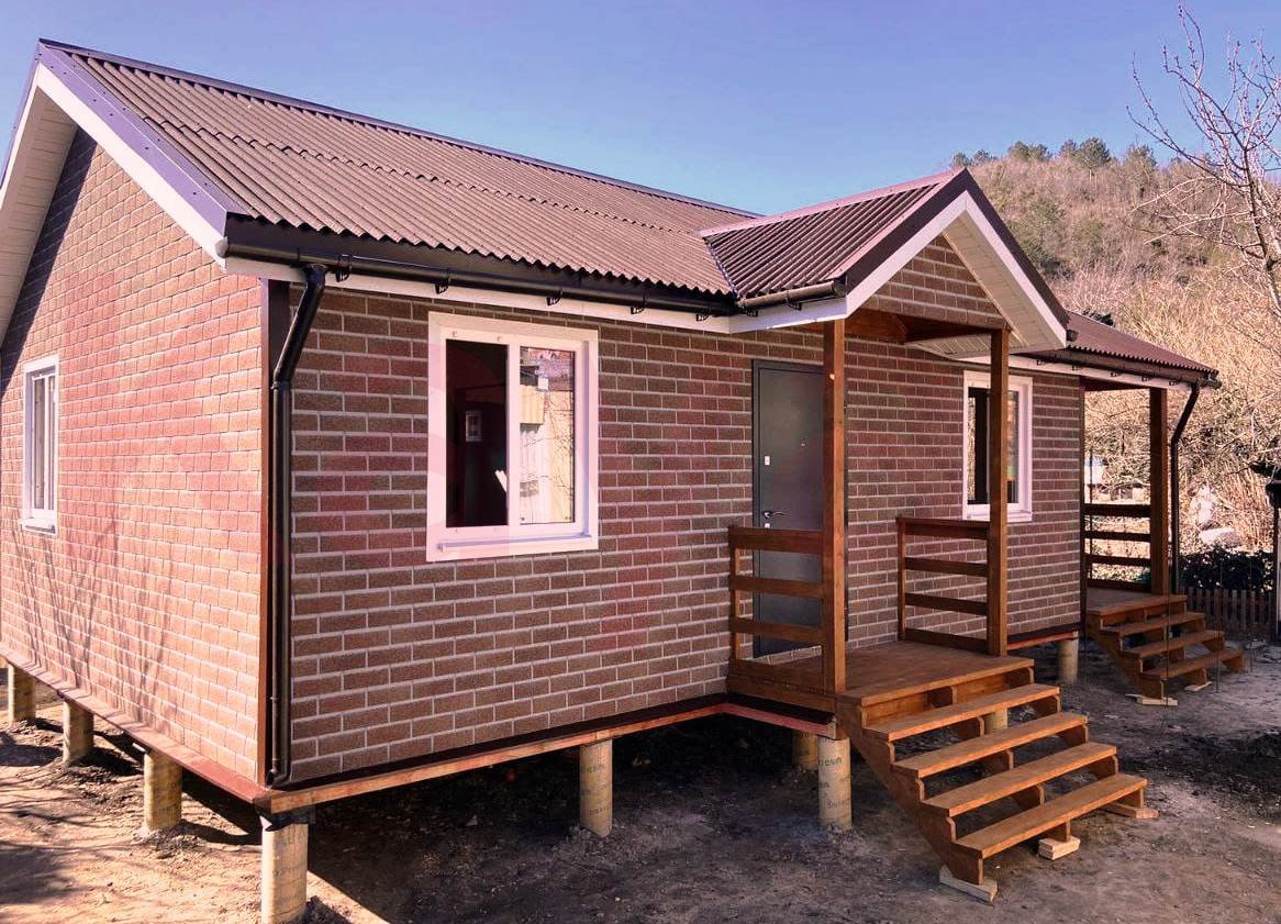 Снаружи отделка стен - Фасадная плитка Brick под кирпич, Водоотливы.
