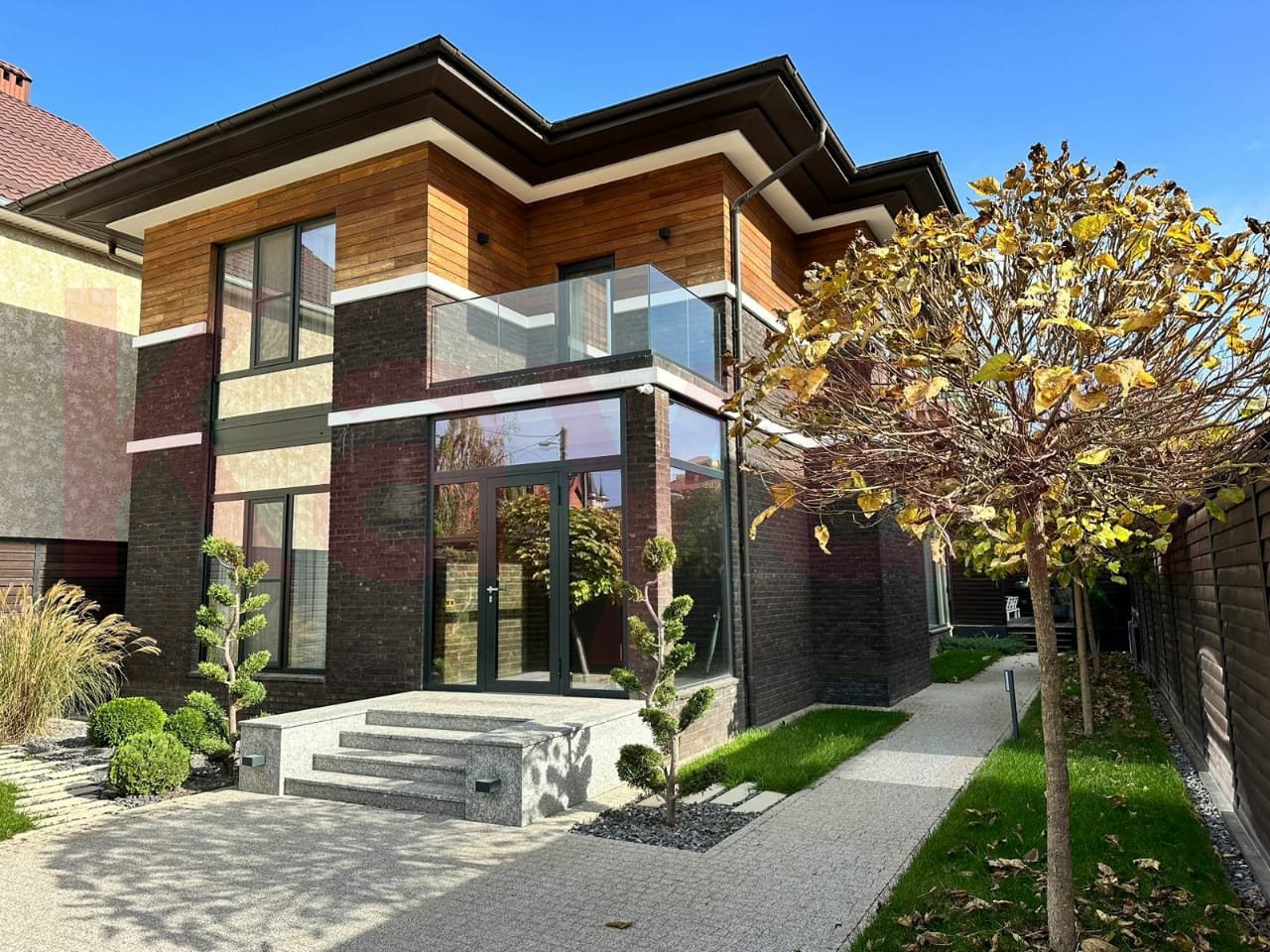 Площадь дома 210 м2, 4 спальни, 2 санузла, просторная кухня-гостиная 40 м2 с выходом на веранду и зону отдыха! Материал стен кирпич ручной формовки, внутренние стены кирпичные, с монолитными стержнями по периметру кровля - гибкая черепица Шинглас ! Окна и витражи из теплого алюминия Alutexh, откатная система в кухне гостиной! Остекление входной группы алюминиевым профилем Alutech! Балкон с ограждением из закаленного стекла! Отделка фасада премиальным Термо ясенем с гарантией 10 лет!