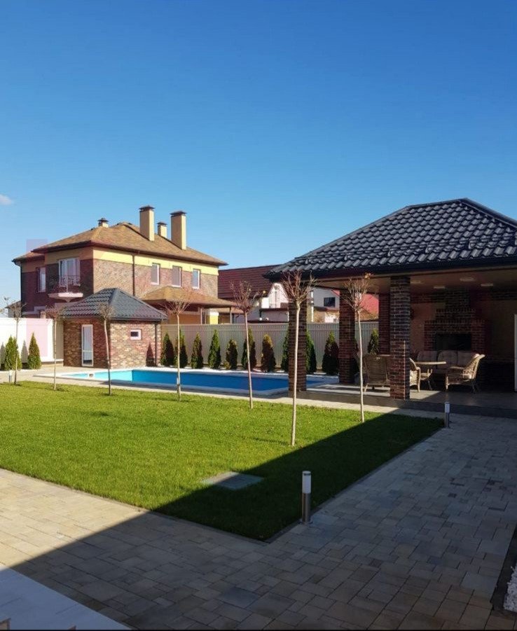 Во дворе беседка, бассейн 10×4 с автоматической системой очистки, автополив.
