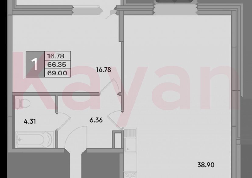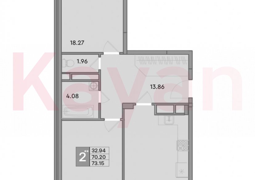 2-комнатная квартира, 66.3 м2, 3/9 этаж