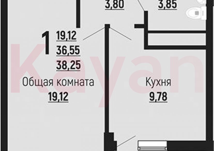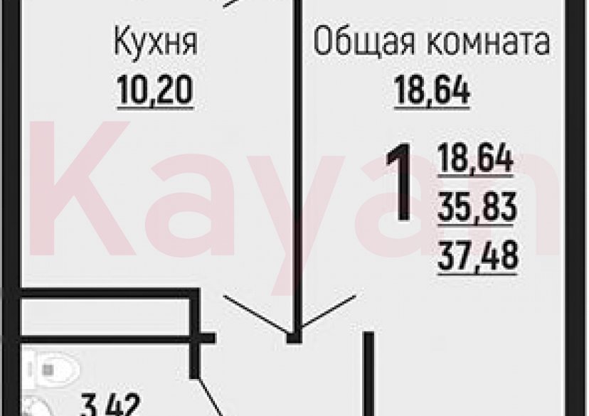 1-комнатная квартира, 35.8 м2, 24/24 этаж