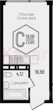 Квартира в ЖК «Гарантия на Обрывной» (Гарантия) литер 1 очередь 1, Кирпично-монолитный, студия, 22.8 кв.м., 12/16, высота потолков: 2.74 м, жилая площадь: 18.68 кв.м., возможна ипотека, площадь кухни 0 кв.м.,