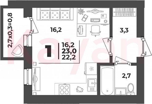 Продажа студии, 22.2 кв.м